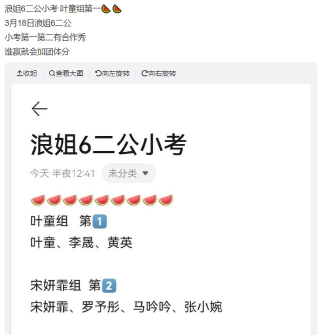 咱们皆知说念,每轮舞台公演前,姐姐们会先进行小考,而小考顺利的姐姐,在公演中会有上风,字据知情东说念主士败露,在第二轮舞台公演小及第,叶童组获取第又名,宋妍霏组获取第二名。